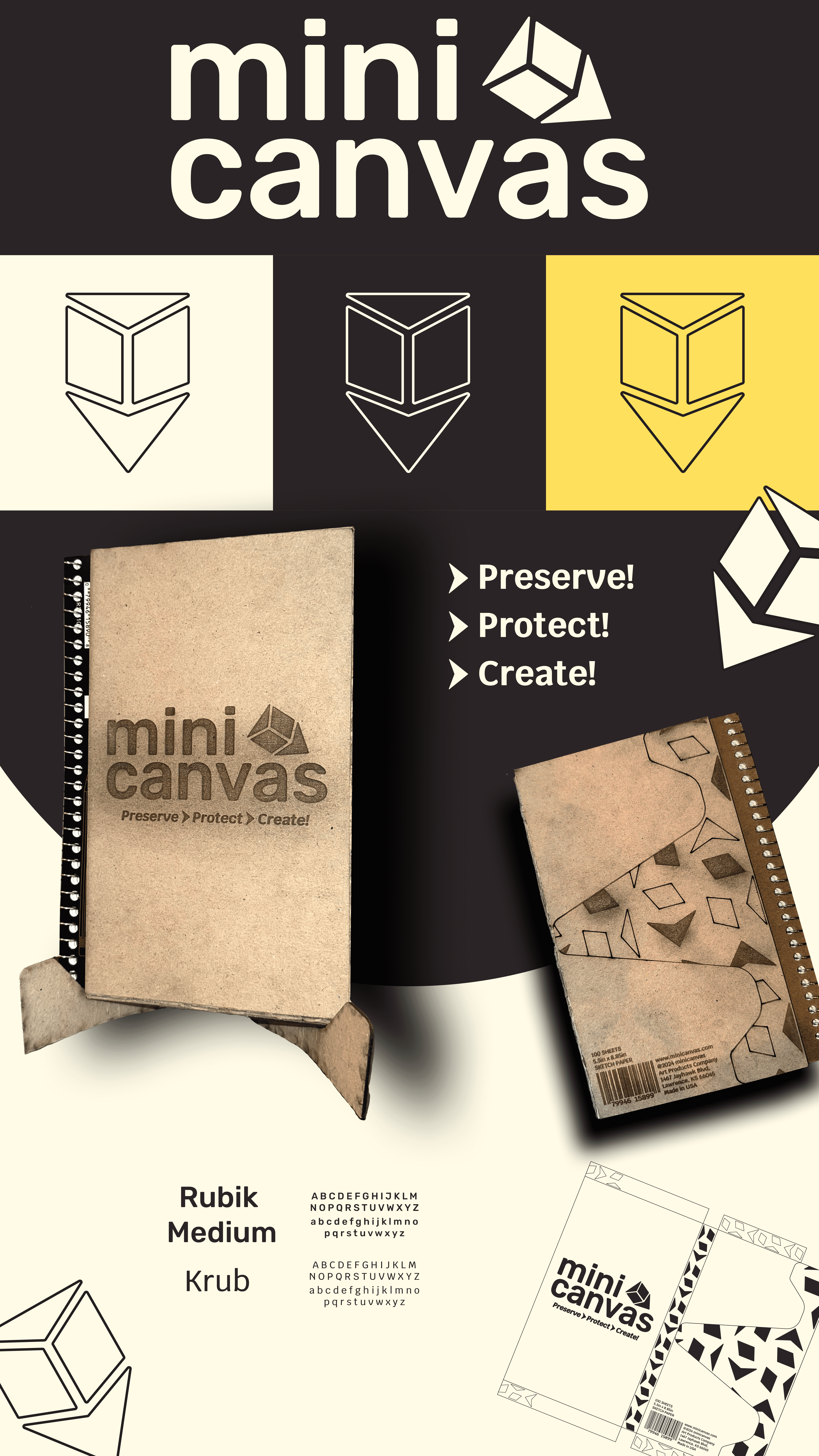 For this project, I developed both the brand identity and packaging design for a new physical product called Mini Canvas, a protective cover for sketchbooks. Inspired by my own frustration with sketchbooks becoming damaged over time, I set out to create a solution that would keep them protected while also feeling intentional and well-designed.