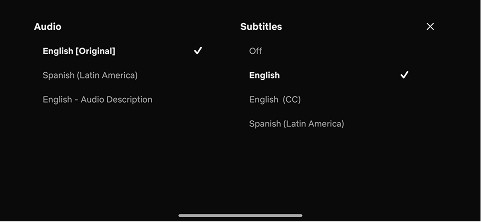 When you click into a show or movie there is only three options